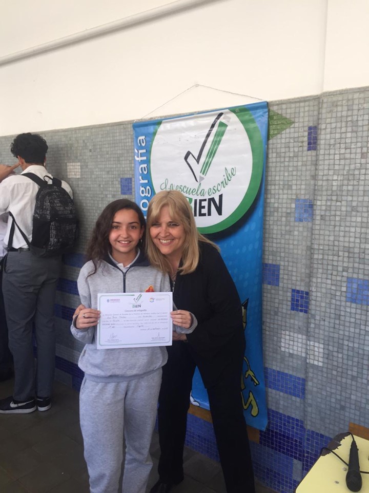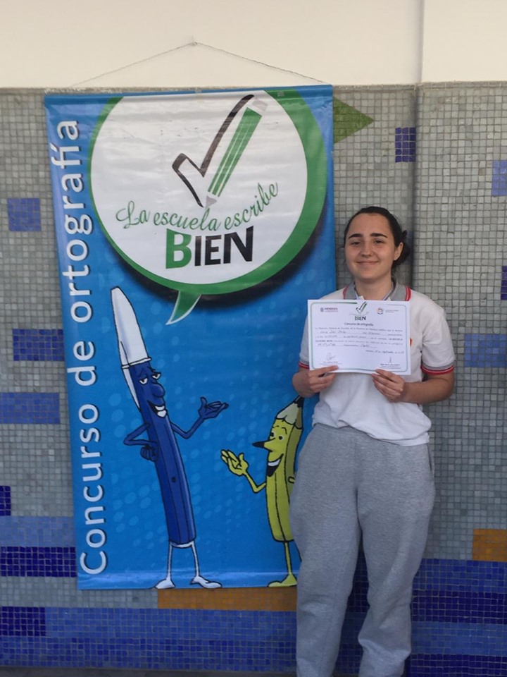 Lucía Burky, alumna de 4° año del colegio P-079 “Corazón de María”, de Ciudad de Mendoza, pasó a la instancia provincial del concurso de ortografía La Escuela Escribe Bien 2019.