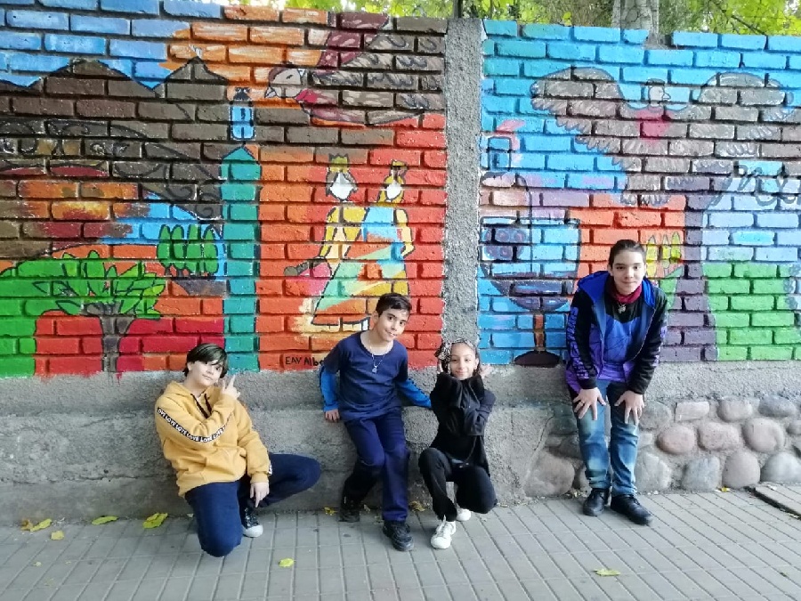 La propuesta posibilita que destacados artistas y docentes de Arte articulen su labor profesional en escuelas de niveles Primario, y Secundario y Escuelas Artísticas Vocacionales, mediante pinturas de grandes formatos en los muros perimetrales de los edificios, y en esta ocasión los protagonistas fueron niños y adolescentes del taller de Dibujo y Pintura de la Escuela Artística Vocacional N° 5-031 “Alberto Thormann”, de Ciudad de Mendoza, con la orientación y acompañamiento de la profesora Lourdes Echegaray, quienes realizaron murales en la escuela N° 1-313 “Beatriz Falcitelli”.