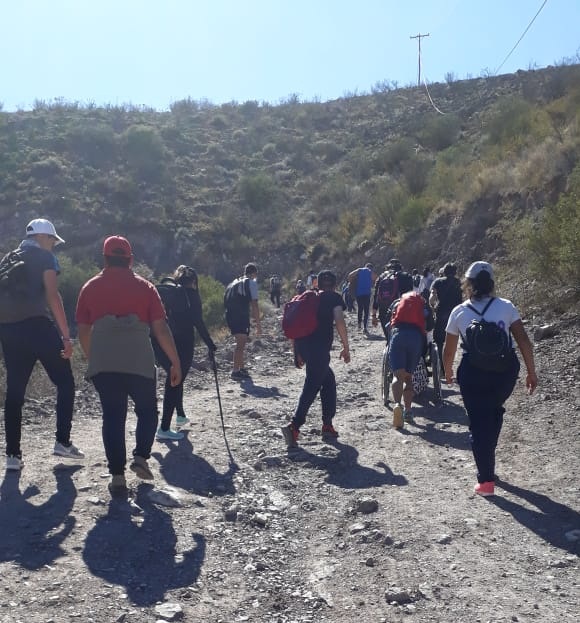 Los chicos estuvieron acompañados por estudiantes del IEF Rivadavia, IEF sede Godoy Cruz, médicos de la Asociación Andina de Médicos Para la Altura (9AAMPA), estudiantes de la Escuela Provincial de Guías de Alta Montaña y Trekking (EPGAMT), directivo y docentes de la escuela “Antenor Riveros”, Centro de Salud de Día “Saludarte”, directivos, profesores y no profesores, Patrulla de Rescate de la Policía de Mendoza, equipo de trabajo de la Municipalidad de Maipú y Mario Gutiérrez, que no solo prestó su prototipo de silla de rueda adaptada, sino que caminó a la par de todos y brindó su experiencia.