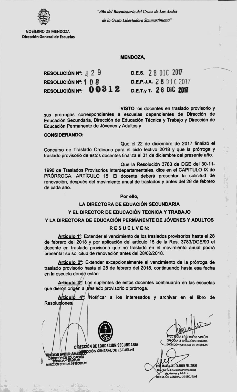 A continuación queda a disposición la Resolución Nº 429-DES-17
