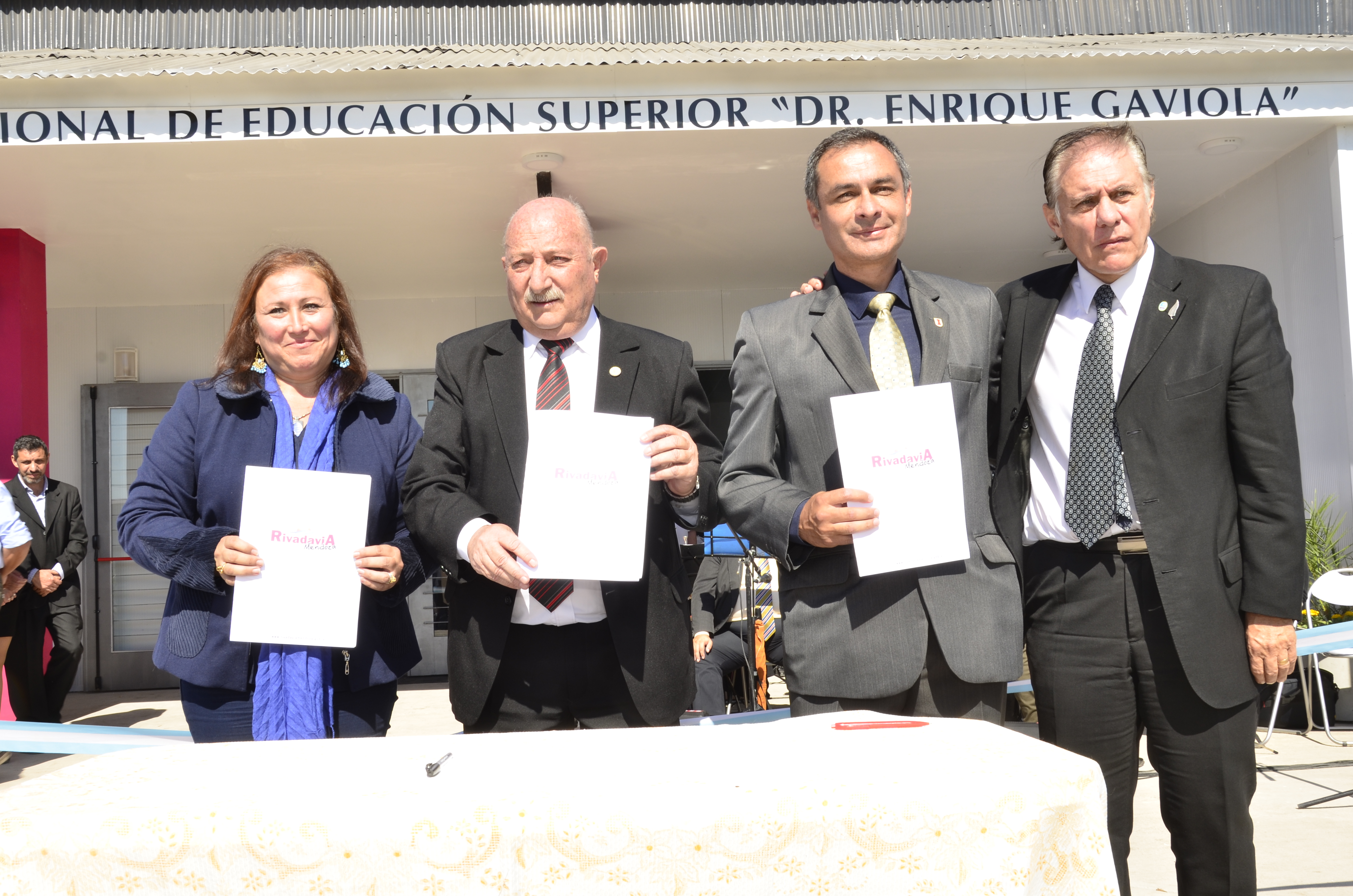 Para celebrar los 134 años de la creación del Departamento de Rivadavia el Intendente Municipal Miguel Ángel Ronco inauguró el Centro Regional de Educación Superior «Doctor Enrique Gaviola», un moderno edificio montado en los antiguos galpones ferroviarios. El acto contó con la asistencia del subsecretario de Educación, Gustavo Capone; Emma Cunietti, coordinadora general de Educación Superior; Luis Castillo, rector del IEF, y Cecilia De Blassi, rectora de Insutec; además del ministro de Seguridad, Gianni Venier, y el secretario de Ambiente, Humberto Mingorance.