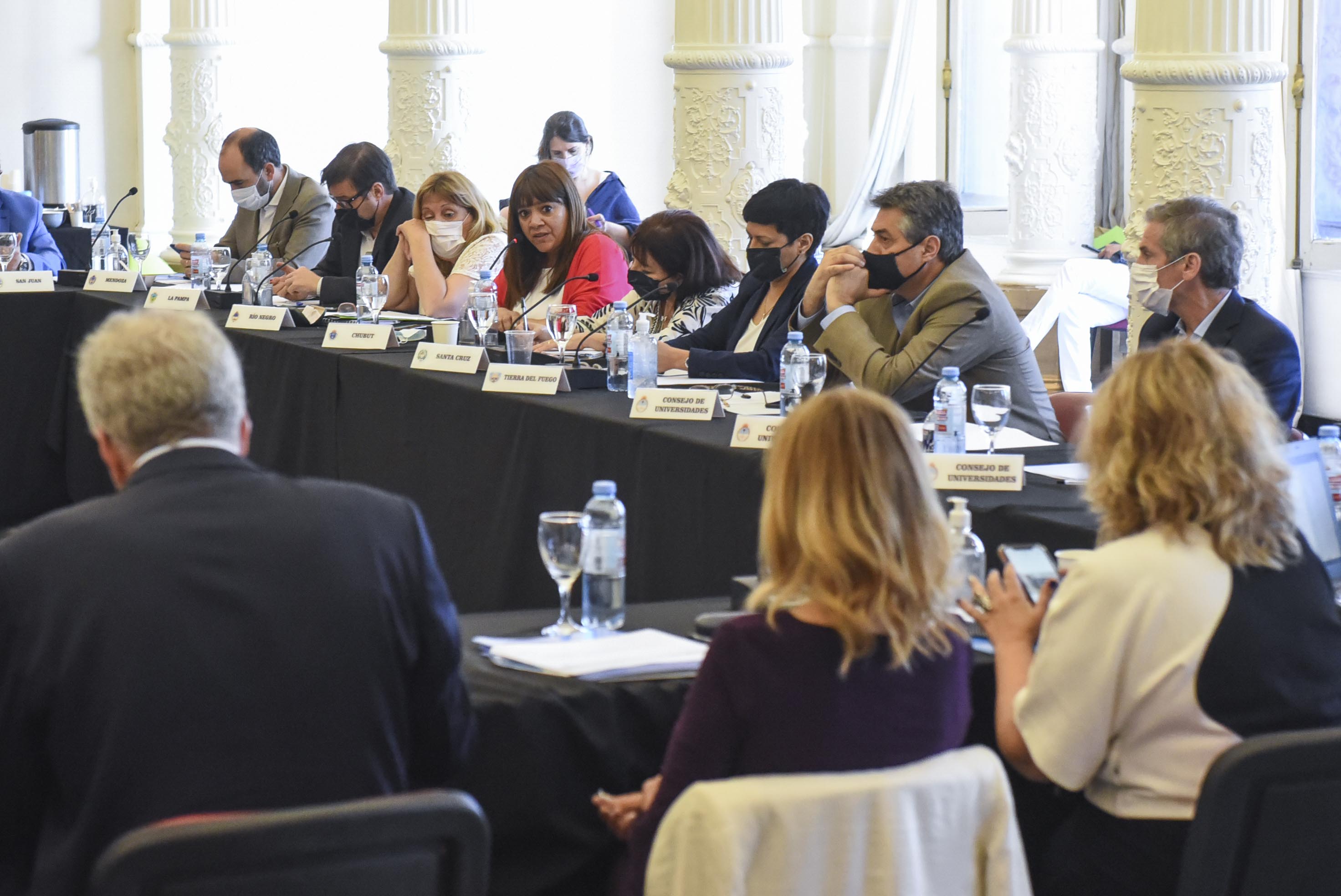 El director General de Escuelas, José Thomas, y los 23 ministros provinciales de Educación, participaron este jueves, en Buenos Aires, en la CXII asamblea del Consejo Federal de Educación (CFE), presidida por el ministro de Educación Nacional, Jaime Perczyk, y que determinó establecer un piso de 190 días de clases para el ciclo lectivo 2022.