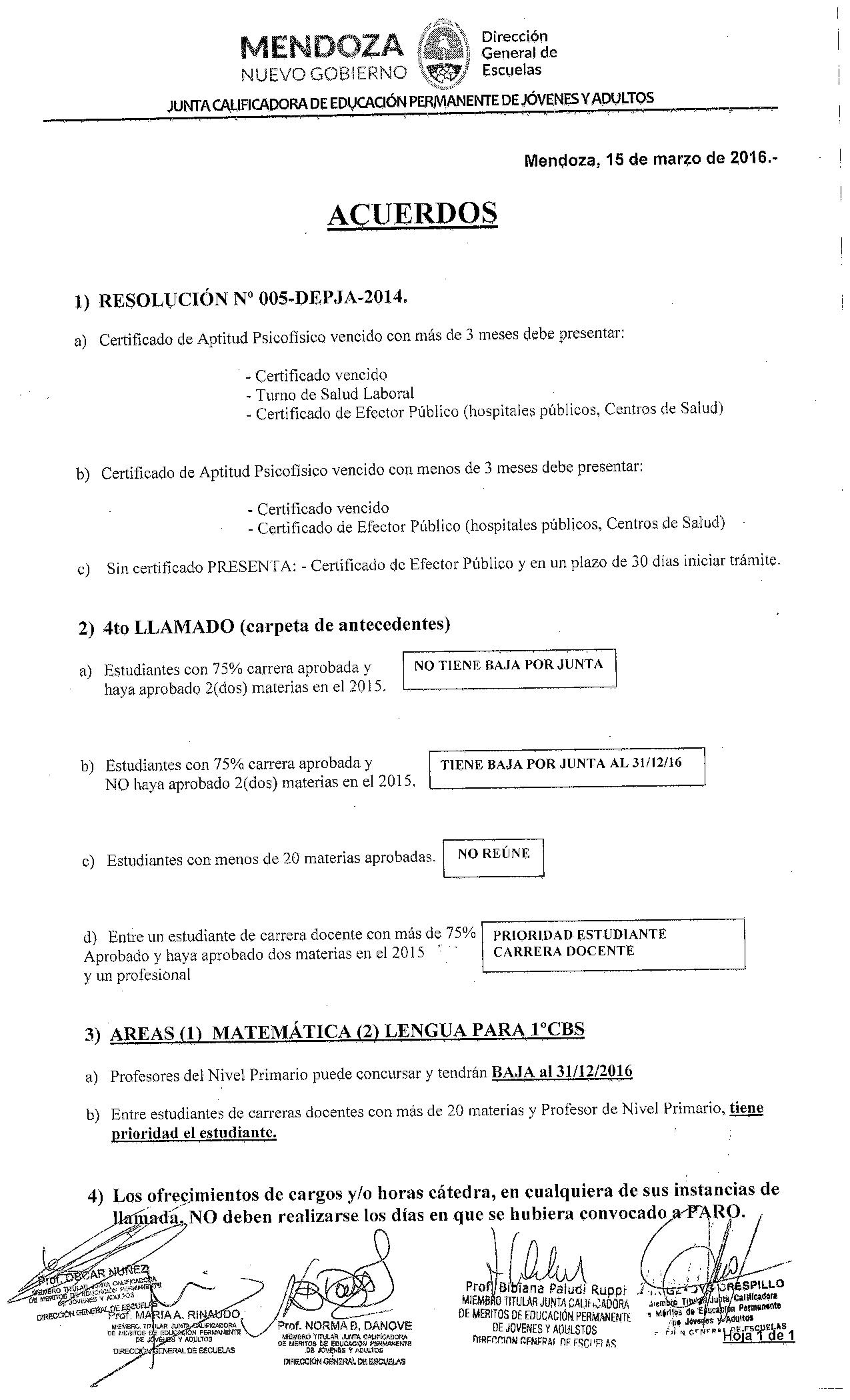 Circular 00004-2016 Pertinente a certificado de aptitud psicofísico para cargos de preceptor y/o secretario