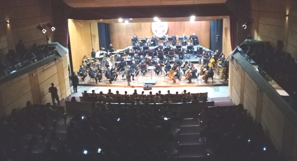 Durante la tarde del jueves 6 de junio 120 alumnos de primer año participaron del concierto didáctico “¿Qué escuchas, cuando escuchas?” realizado por la Orquesta Sinfónica de la Universidad Nacional de Cuyo. A través de una metodología y didáctica adecuada a su contexto, tuvieron un primer acercamiento a la música y el lenguaje sinfónico mediante una charla interactiva  realizada por la narradora: Gabriela Guiñazú. Por ejemplo, cuáles son los instrumentos y partes que componen una Orquesta Sinfónica.