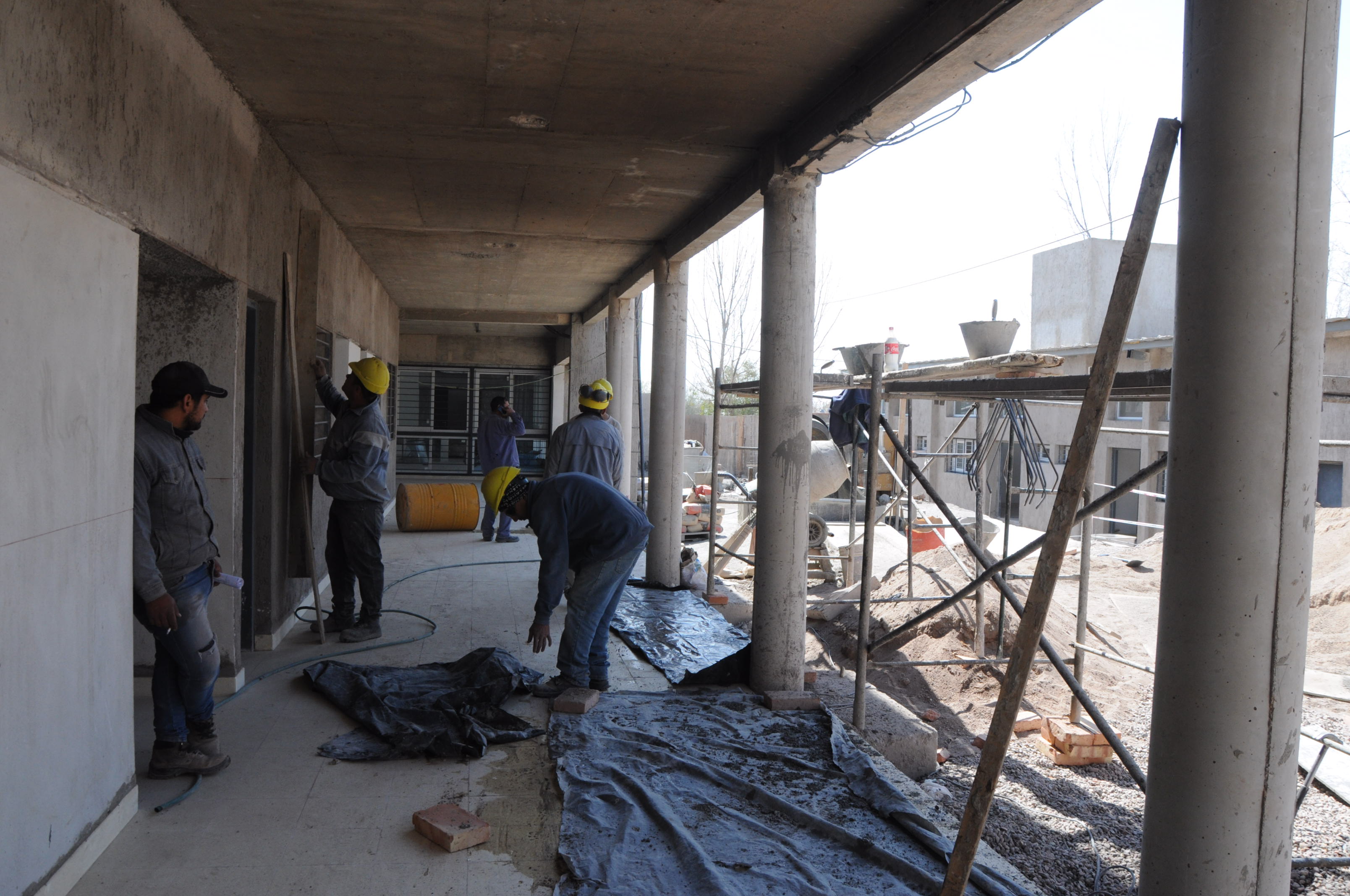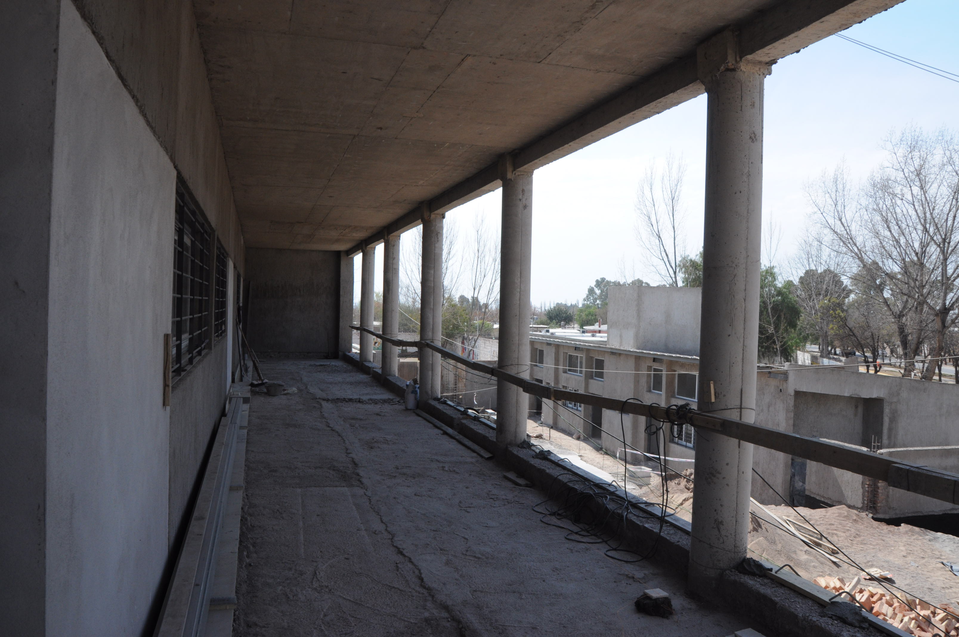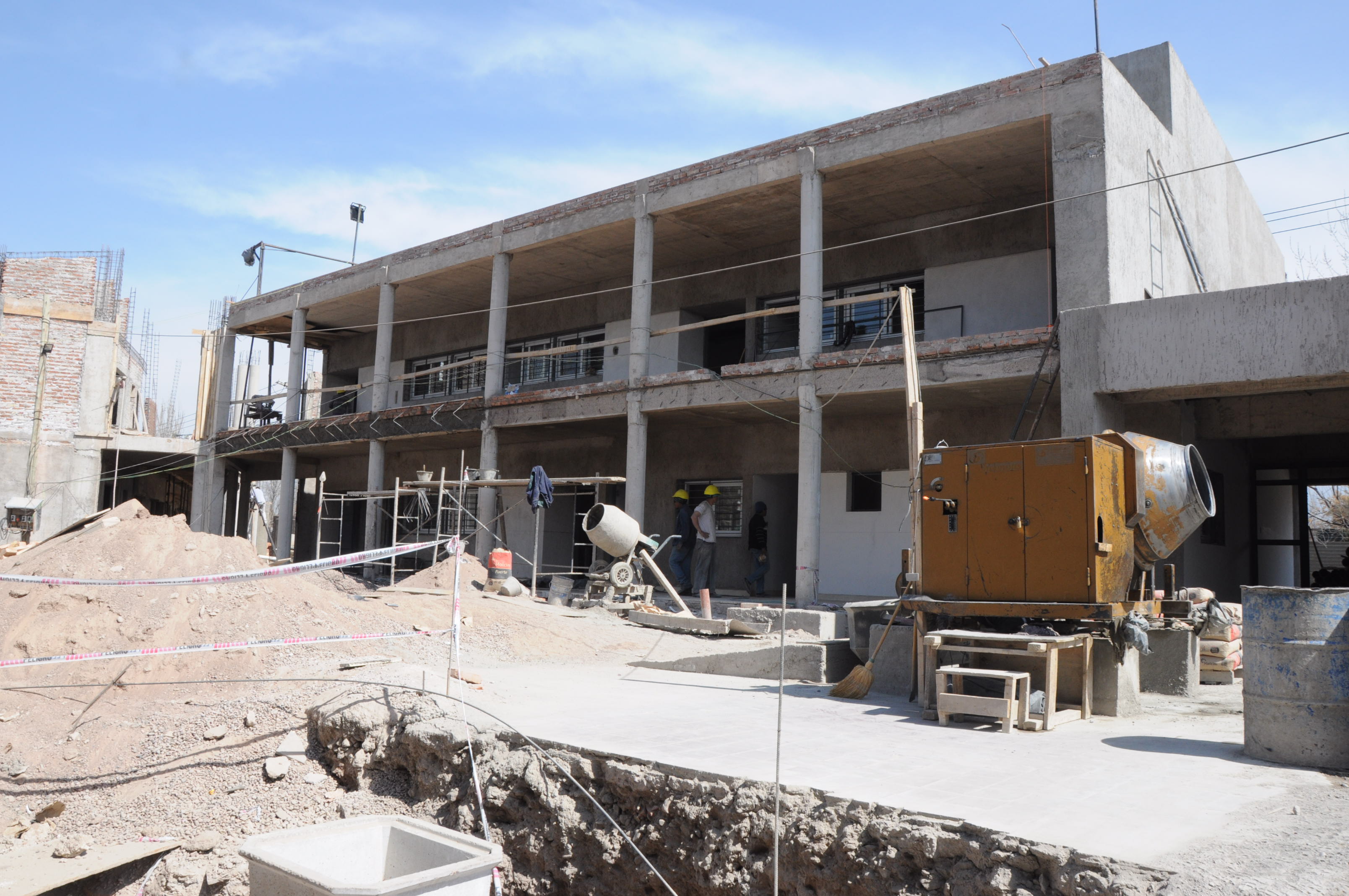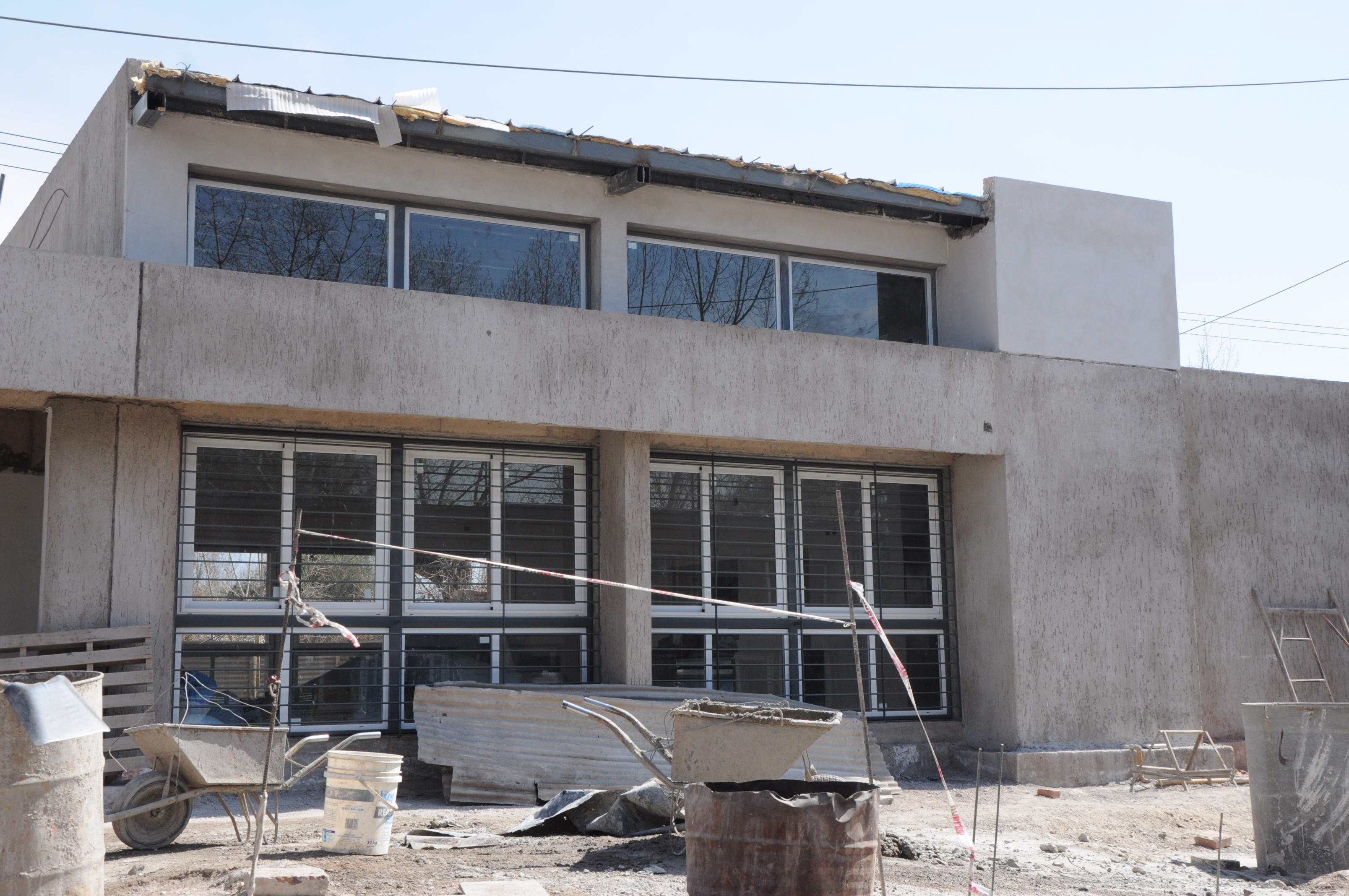 DSC_0096-2La obra en el edificio de Las Heras muestra un progreso que supera el 75% y la de Tunuyán está al 50%. Las contratistas continúan con la losa, revoques y la colocación de pisos en las aulas. Sigue el montaje de los techos y la instalación de carpinterías en puertas y ventanas.