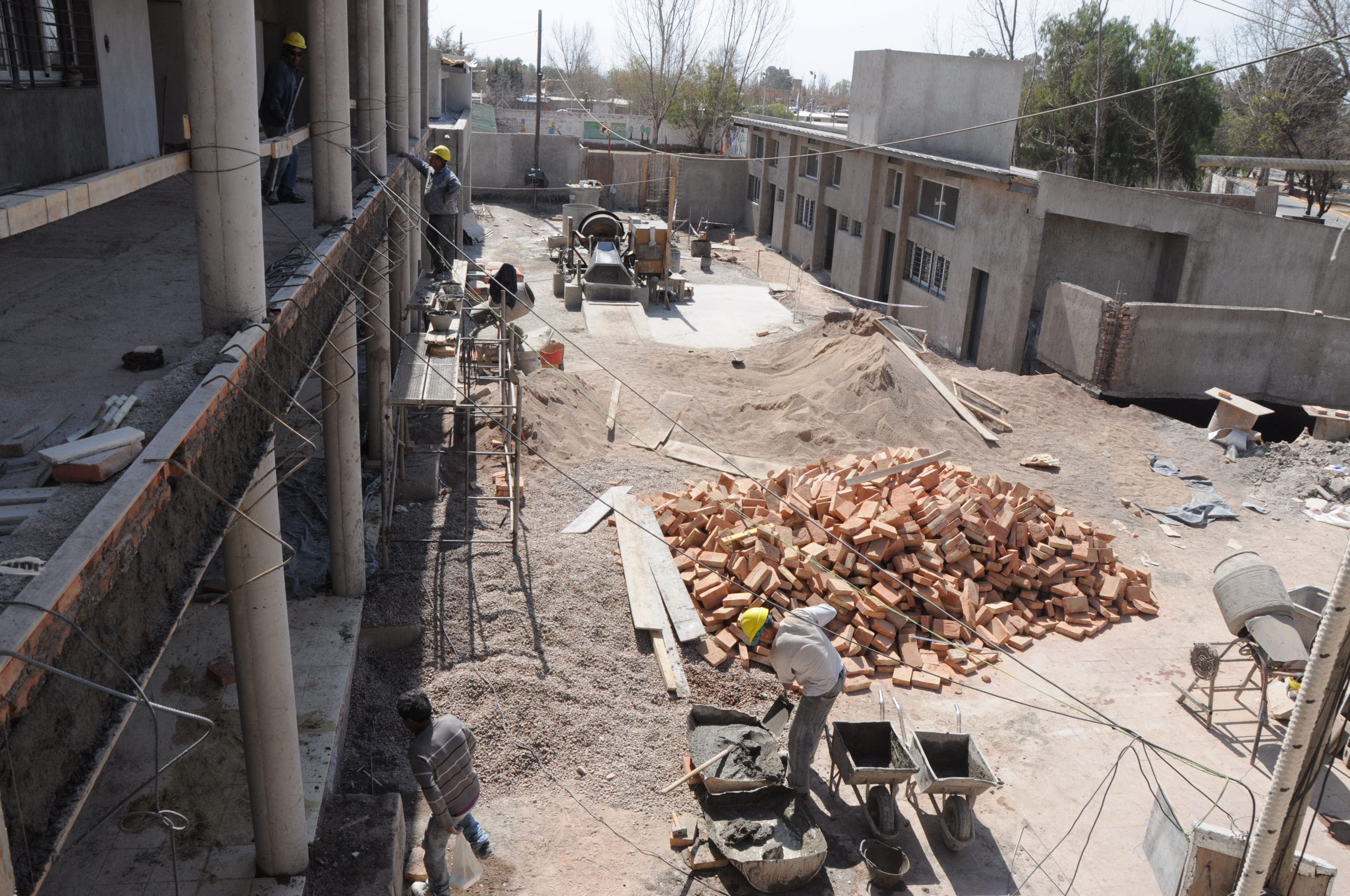 Continúa sin demoras la construcción de las escuelas 1-171 Fuerza Aérea Argentina, de Las Heras, y 1-197 Dr. Ventura Gallegos, de Tunuyán. Los trabajos en la escuela ubicada en el distrito El Resguardo muestran un avance que supera el 75%, mientras que en el edificio educativo ubicado sobre la ruta 92, de Colonia Las Rosas, la intervención está al 50%.