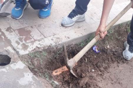 Autoridades de la escuela Nº 1-047 Bartolomé Mitre se comunicaron con la Coordinación de Servicios Generales a fin de solicitar el destape de caños de agua del patio del establecimiento escolar.