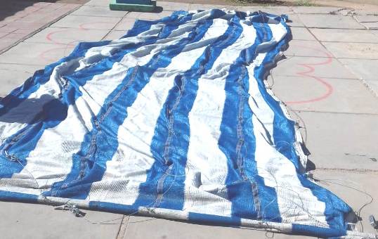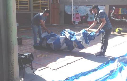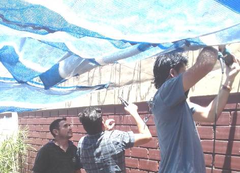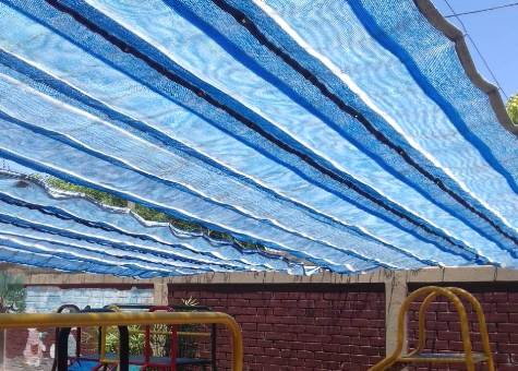 El personal de Servicios Generales se presentó en el establecimiento Nº 1-650 Ley 1420 para arreglar la media sombra del patio exterior de dicho establecimiento.