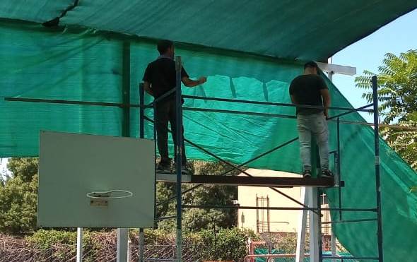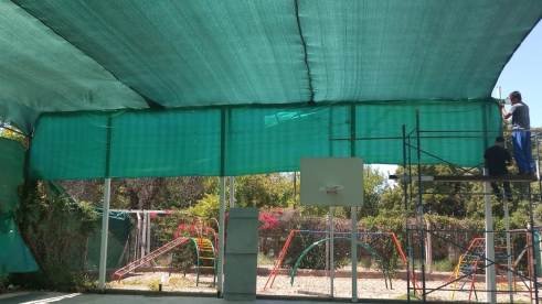 Esta vez la cuadrilla de metalúrgicos se presentó en el establecimiento para realizar el re-acondicionamiento de estructura metálica y poder colocar tela media sombra sobre el patio del establecimiento.