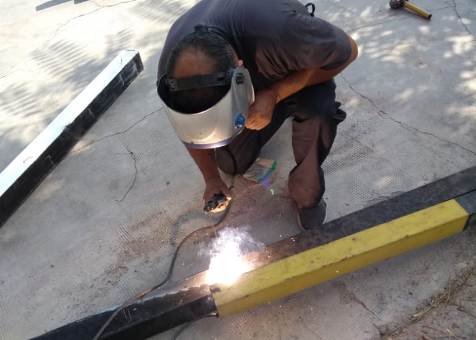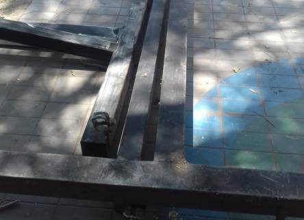 Personal idóneo en metalurgica de la Coordinación de Servicios Generales, asistió a la escuela Nº 2-002 «Pedro Nolasco Ferreyra» de Capital, para comenzar con el armado de la estructura para el toldo de media sombra.