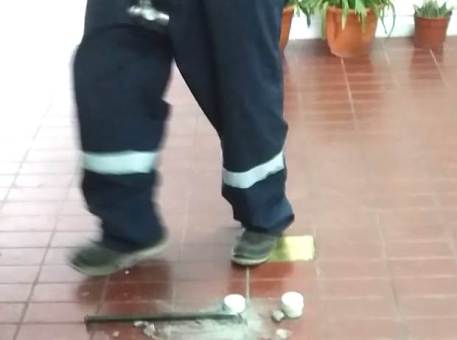 Personal de la Coordinación de Servicios Generales, se presentó en el establecimiento Nº 4-140 «Armando Tejada Gómez» acudiendo al pedido de los directivos donde solicitaban que se retiraran caños de agua en un aula, ya que se encontraban sobresalidos del suelo y podía ocasionar algún tipo de accidente.