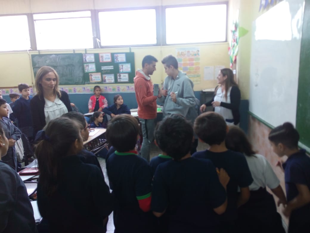 Este joven autista que aún con las características propias de su condición y acompañado de su terapeuta, logra comunicarse con el mundo, a través del arte. Fue una experiencia importante para los alumnos de los terceros grados, del turno mañana, que lo recibieron y que interactuaron con él.